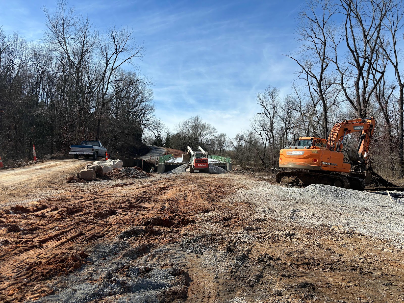 2024/2/7 4081 Polk Co Bridge Get link Facebook X Pinterest Email Other Apps February 07, 2024 Arrived at 11:35, contractor was building up approaches to get ready to form up slabs. He also placing Rip Rap Get link Facebook X Pinterest Email Other Apps Comments